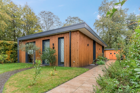 - Brede, zonnige tuin met pergola, loungehoek en terras